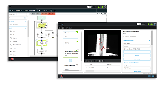 O AI Vision é uma série de recursos e produtos de extensão que se integram perfeitamente ao seu TMflow Vision Node existente. Revolucione seus processos automatizados com funções como posicionamento de peças recebidas, leitura de código de barras, medição de dimensões e inspeção visual. Ao utilizar o AI Vision, esteja pronto para aprimorar a qualidade da sua produção e maximizar a eficiência operacional.