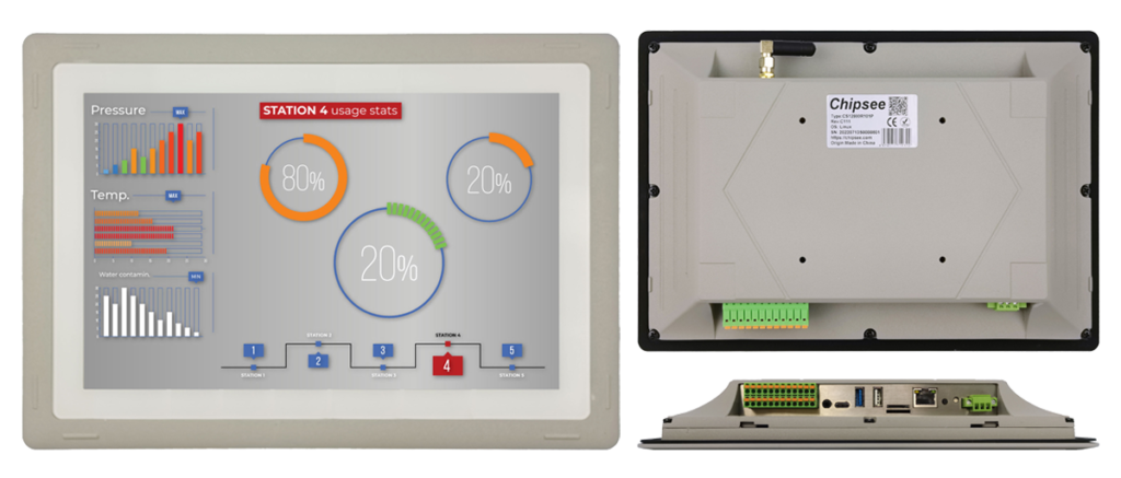 O BERRY-PPC-101CA72 é um computador de painel industrial de alta qualidade, que possui um LCD de 10,1 polegadas com tela sensível ao toque capacitiva de dez pontos, um processador ARM dual Cortex-A72 e Quad Cortex-A53, 4GB de RAM DDR3 e 16GB de Flash eMMC, Ethernet de 1Gb, portas USB 2.0 e 3.0, uma porta Tipo-C, uma porta LAN, conectores RS232 e RS485, bem como um conector de áudio de 3,5mm.