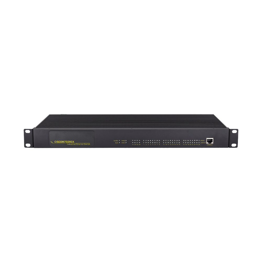 O COM-ISGL2-28P-7028GX-4XGF-8GC-16GT-AD220 é um switch Ethernet industrial de 10 Gigabits para montagem em rack de camada 2. Ele suporta 4 portas SFP+ de 10 Gigabits, 8 portas combo de 8 Gigabits e 16 portas 10/100/1000Base-T(X), utilizando um mecanismo de armazenamento e encaminhamento, que fornece recursos robustos de processamento de largura de banda, detecta automaticamente erros de pacotes, reduz falhas de transmissão e suporta facilmente redes 10G, garantindo uma transmissão de dados estável, confiável e eficiente.