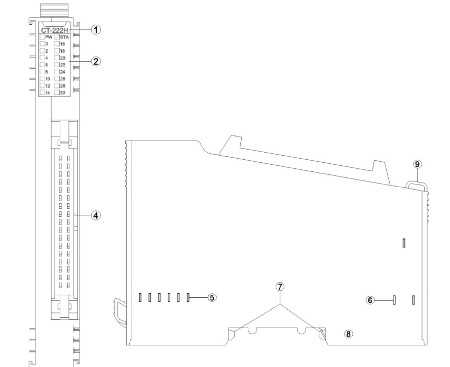 CT-222H – MÓDULO I/O, TENSÃO 24VDC, 32 CANAIS SAÍDAS SOURCE, MONTAGEM TRILHO DIN, TEMPERATURA -40 A 85°C, DIMENSÕES 115 X 14 X 75MM, PESO 65G, PROTEÇÃO IP20