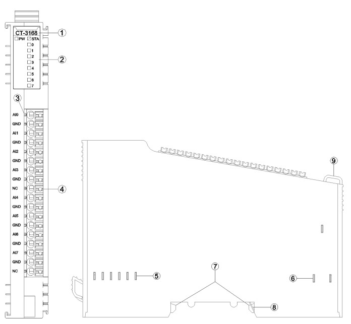 CT-3168 – MÓDULO I/O, 8 CANAIS ENTRADAS ANALÓGICAS, MONTAGEM TRILHO DIN, TEMPERATURA -40 A 85°C, DIMENSÕES 115 X 14 X 75MM, PESO 65G, PROTEÇÃO IP20, ENTRADAS 0 A 5VDC / 0 A 10VDC / ±5VDC / ±10VDC