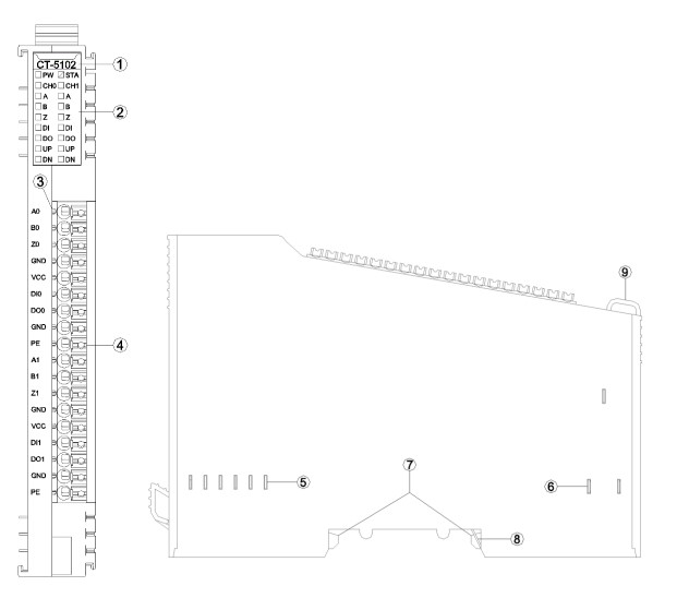 CT-5102 – MÓDULO I/O, TENSÃO 24VDC, 2 CANAIS ENTRADAS ENCODER, MONTAGEM TRILHO DIN, TEMPERATURA -40 A 85°C, DIMENSÕES 115 X 14 X 75MM, PESO 65G, PROTEÇÃO IP20, SINAL DO ENCODER ABZ 5VDC