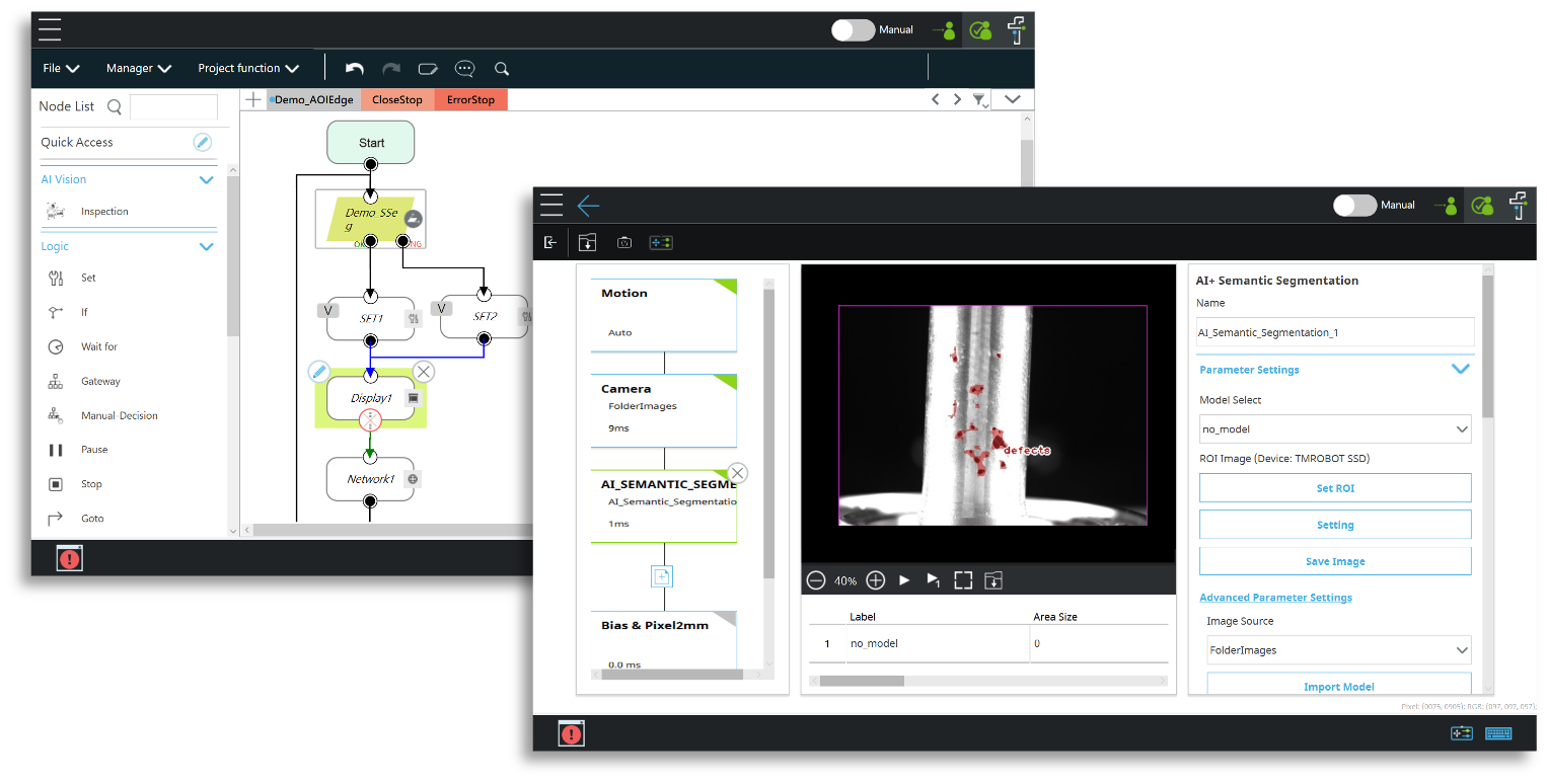 Você está enfrentando desafios para configurar áreas de trabalho puramente visuais em sua fábrica? Ou precisa de várias câmeras em uma única área de trabalho visual? O TM AI+ AOI Edge é uma solução de software inovadora projetada para aprimorar os recursos visuais das estações de trabalho, integrando funções avançadas de visão.